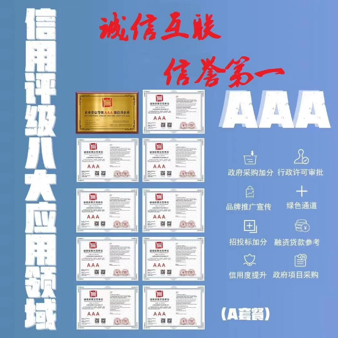 3A認證是企業信用評級的AAA,是一種信用資質。那么3A認證包括哪些證書呢?企業3A認證含七證一體系:AAA級企業信用證書、AAA級重合同守信用單位、AAA級誠信經營示范單位、AAA級資信企業、AAA級質量服務誠信單位、AAA級誠信供應商、中國誠信企業家。有了七證一牌,在招投標項目中是加分項,是企業履約能力的象征,也是競爭力的證明。