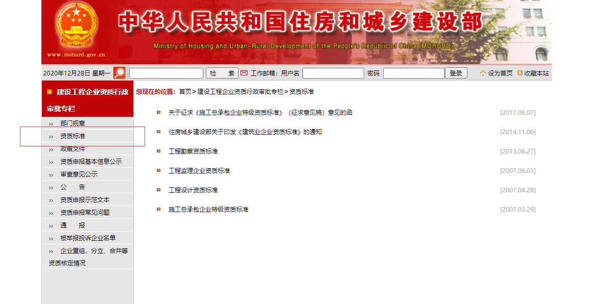 建筑企業(yè)常常需要辦理建筑資質(zhì),但是卻往往不知道怎么查詢相應(yīng)的資質(zhì)要求,以及國家的法律法規(guī)。其實這個問題并不難,建筑企業(yè)所有的資質(zhì)標準都可以在住建部官方網(wǎng)站上查詢到、