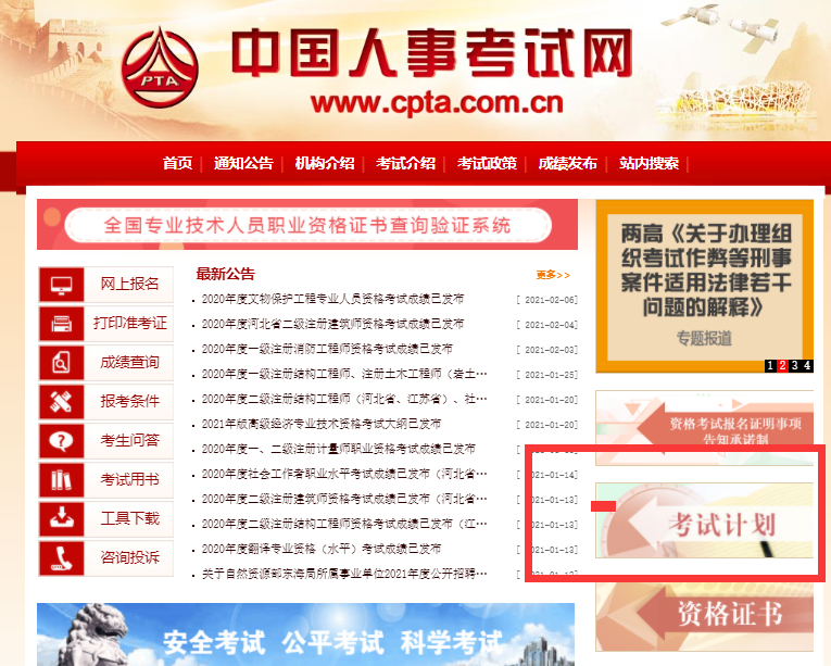 另外,如果要查看全年的考試計劃和時間,則需要點擊右側(cè)的"考試計劃"