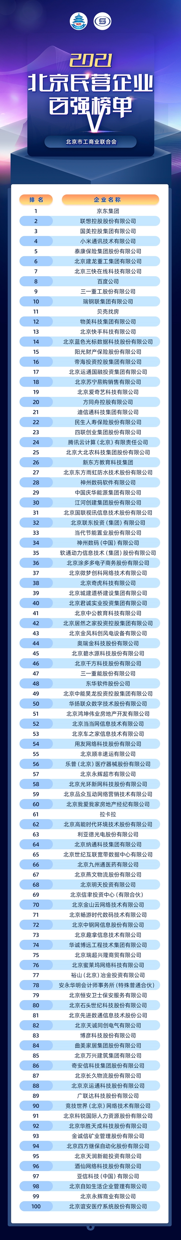 北京:2021民營企業百強榜單發布!